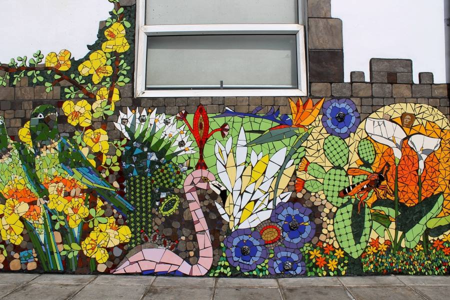 The collective of artists' public art mosaic would share an international legacy of connectivity, urban art collaborations, skill sharing and promote engagement between artists and audiences. The people of Puente Alto gained an educational and environmentally enhancing urban art mural that would strengthen their sense of pride for the district and celebrate the wildlife and plants of the region, through the thematic 'Magic Garden'.